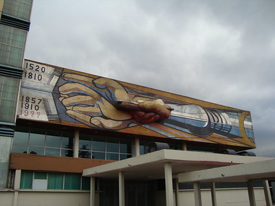 «El mural se compone de un brazo con dos manos entrelazadas , una tercera en relieve sobresale y un lápiz apunta hacia un libro abierto en cuyas páginas aparecen escritas algunas de las fechas más importantes de la historia mexicana: 1521, la conquista española; 1810, la independencia; 1857, la constitución liberal; 1910, la revolución y en la parte inferior agrega 19??, que simbolizan expectativas en el futuro. El brazo con las manos entrelazadas representa el esfuerzo del pueblo a lo largo de la historia mexicana para alcanzar una cultura popular». (Tomado de Rectoría de la UNAM)
