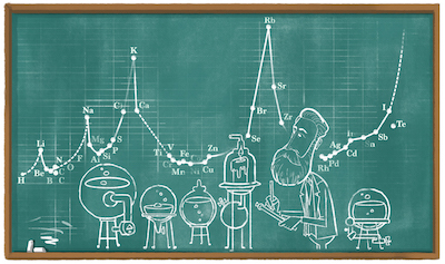 Meyer diseñó una tabla más completa en 1868, pero antes de que pudiera publicar, Mendeleev publicó su propio artículo que colocaba todos los elementos conocidos en una sola mesa y cimentaba su lugar en la historia de la ciencia. El siguiente documento de Meyer de 1870 fue innovador por derecho propio, ya que su demostración gráfica de la relación entre el volumen atómico y el peso atómico proporcionó pruebas sólidas para la ley periódica que describe patrones cíclicos entre los elementos. La famosa exhibición de Meyer se representa detrás de él en la obra de arte Doodle de hoy.